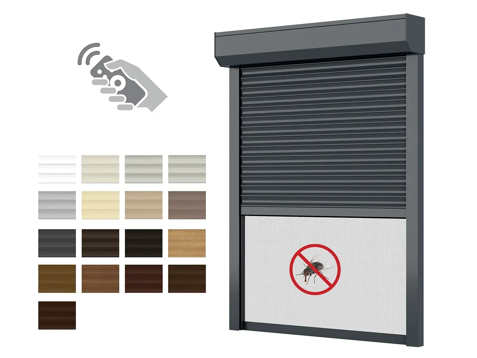 Al redőnyök 205mm Redőnytok beépített rovarhálóval -2500mm-es magasságig-MOTOR-TÁVIRÁNYÍTÓ