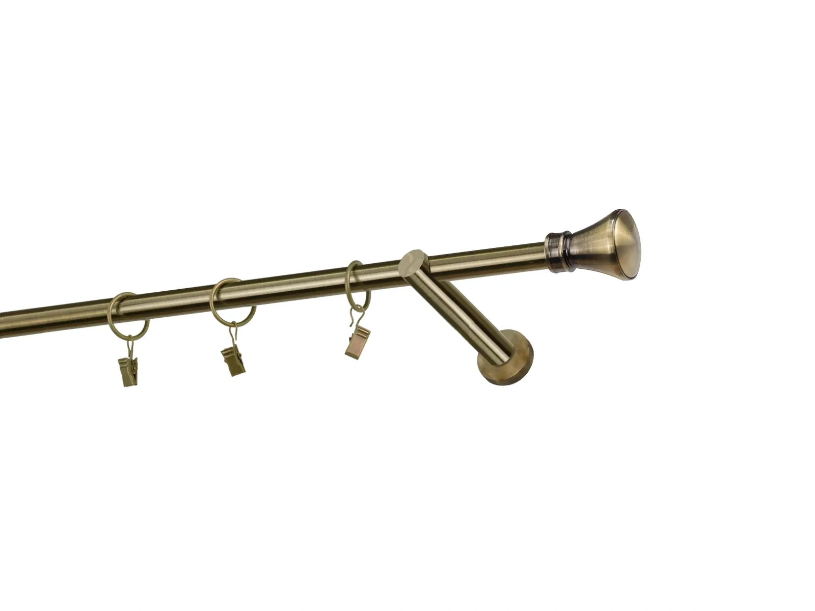 Felületkezelt egysoros fém függönykarnis antik (matt arany) árnyalat. Minőségi galvanizált fém függönykarnisok. A galvanizálás nagyobb felületi szilárdságot, nagyobb karcállóságot és sima felületet biztosít. Készletként szállítjuk.