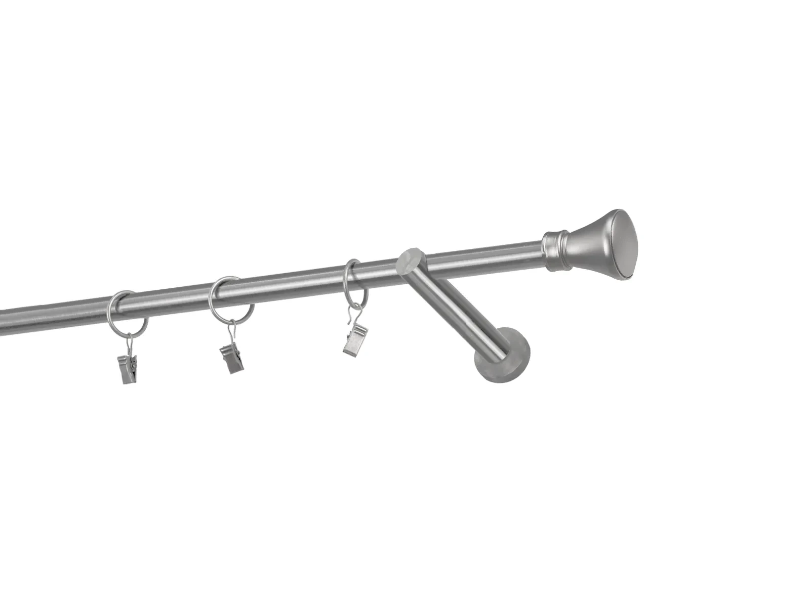 Hosszúság 1000 mm – 16mm átmérőjű rúd - 1000mm hosszú – 1db, tartókonzol - 2db, karnisvég - 2db, karikák csipesszel – 9db (karikák és csipeszek választásakor), csavarok és tiplik szerelésre