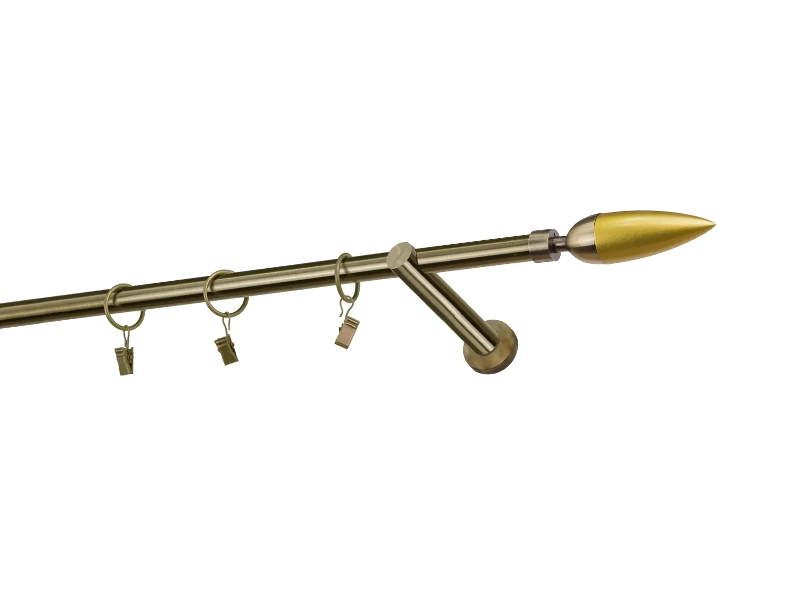 Felületkezelt egysoros fém függönykarnis antik (matt arany) árnyalat. Minőségi galvanizált fém függönykarnisok. A galvanizálás nagyobb felületi szilárdságot, nagyobb karcállóságot és sima felületet biztosít. Készletként szállítjuk.
