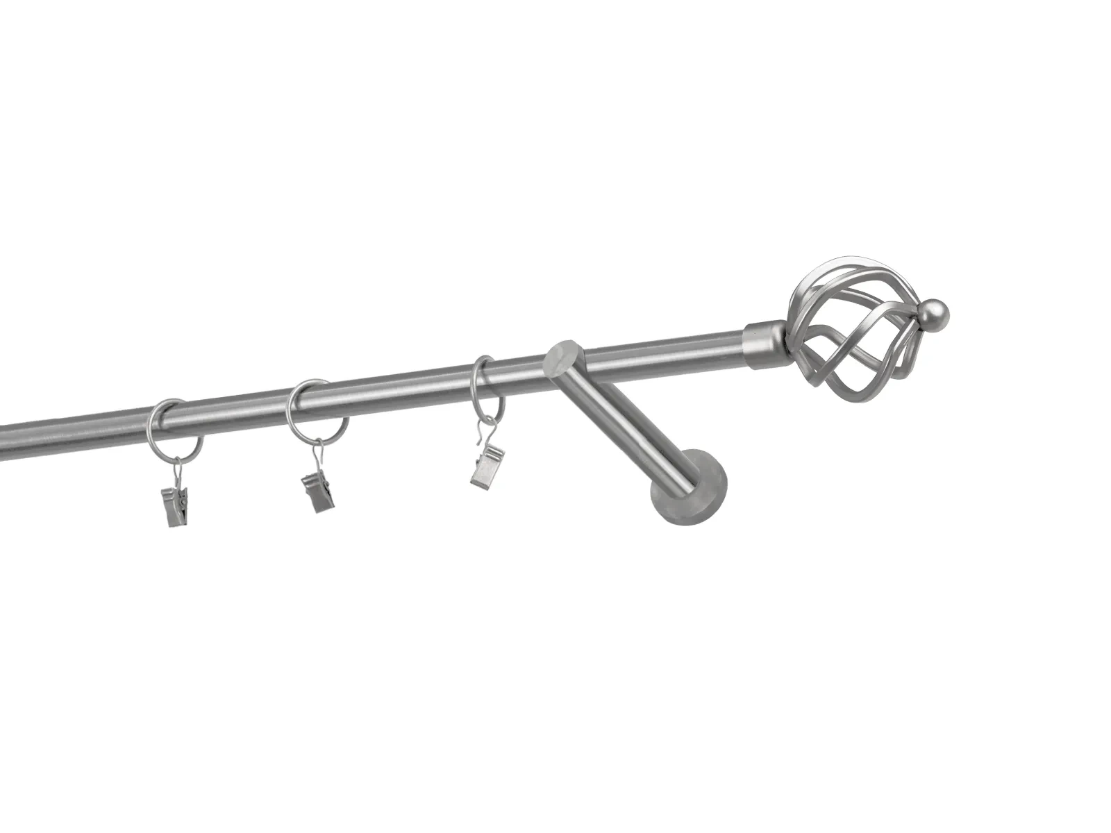 Felületkezelt egysoros fém függönykarnis satin (matt nikkel) árnyalat. Minőségi galvanizált fém függönykarnisok. A galvanizálás nagyobb felületi szilárdságot, nagyobb karcállóságot és sima felületet biztosít. Készletként szállítjuk.