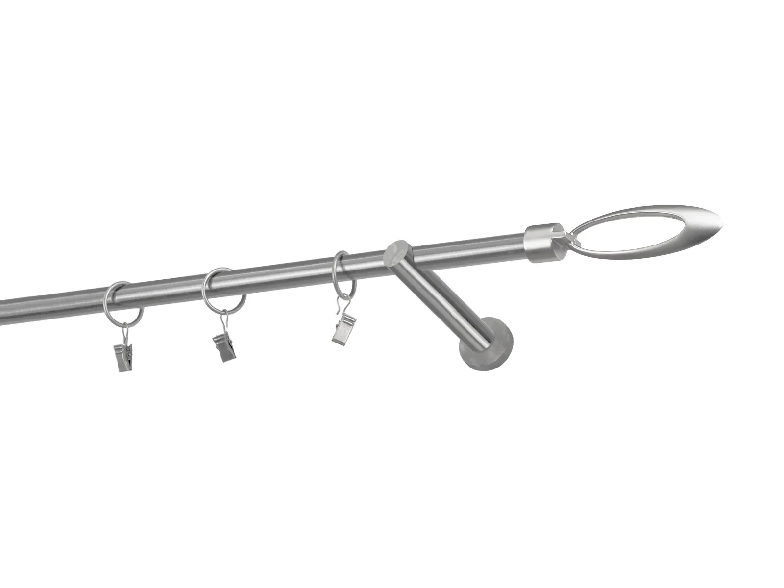 Hosszúság 2400 mm – 16mm átmérőjű rúd - 2400mm hosszú – 1db, tartókonzol - 2db, karnisvég - 2db, karikák csipesszel – 23db (karikák és csipeszek választásakor), csavarok és tiplik szerelésre