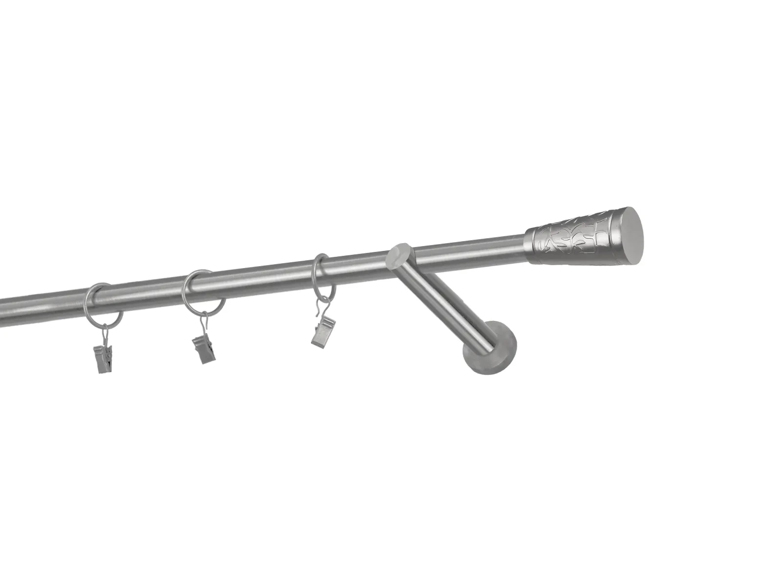 Hosszúság 1000 mm – 19mm átmérőjű rúd - 1000mm hosszú – 1db, tartókonzol - 2db, karnisvég - 2db, karikák csipesszel – 9db (karikák és csipeszek választásakor), csavarok és tiplik szerelésre