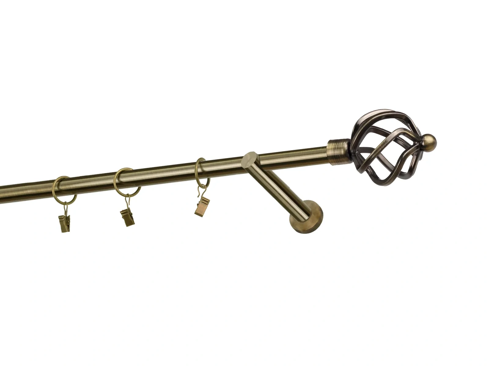 Felületkezelt egysoros fém függönykarnis antik (matt arany) árnyalat. Minőségi galvanizált fém függönykarnisok. A galvanizálás nagyobb felületi szilárdságot, nagyobb karcállóságot és sima felületet biztosít. Készletként szállítjuk.