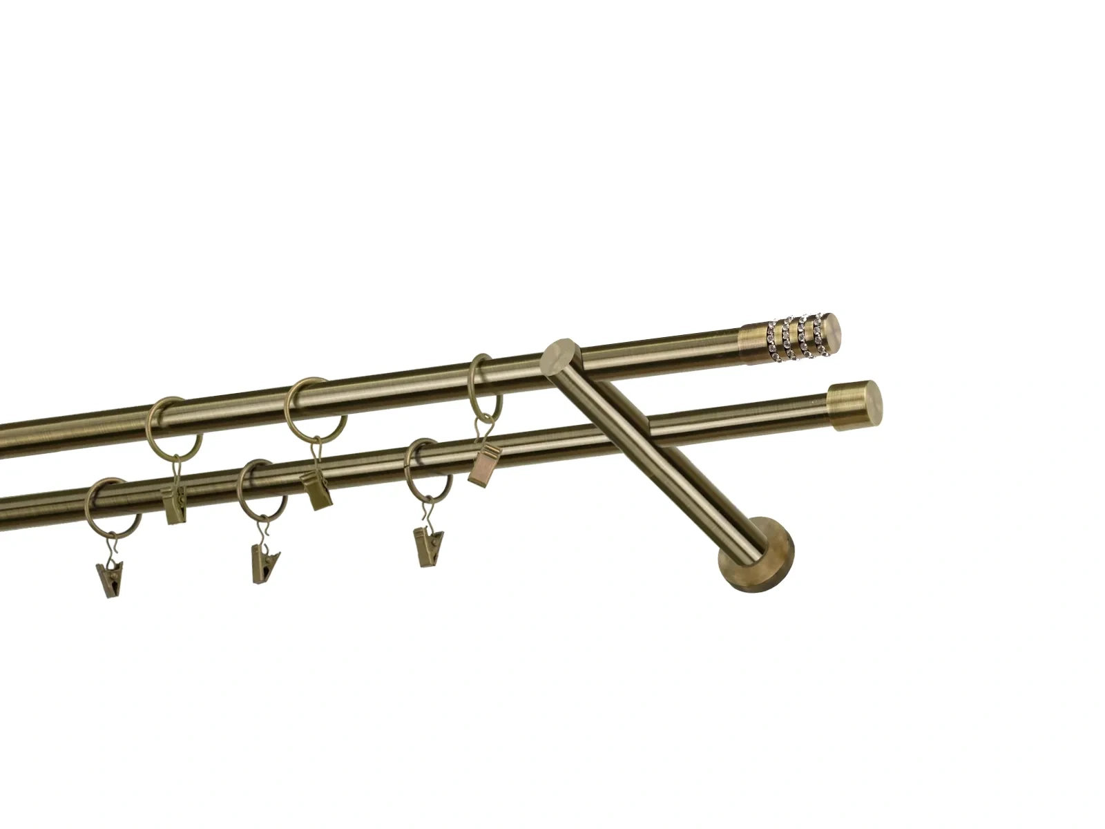 Felületkezelt kétsoros fém függönykarnis antik (matt arany) árnyalat. Minőségi galvanizált fém függönykarnisok. A galvanizálás nagyobb felületi szilárdságot, nagyobb karcállóságot és sima felületet biztosít. Készletként szállítjuk.