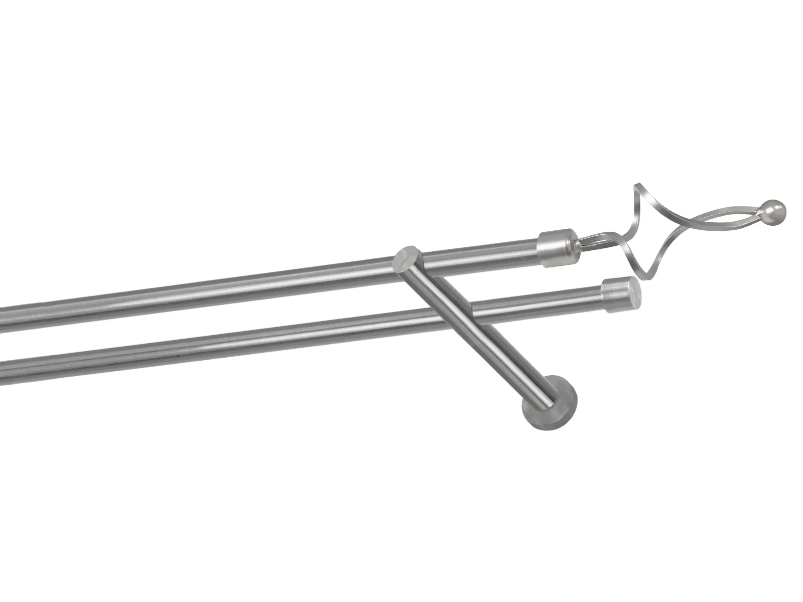 Felületkezelt kétsoros fém függönykarnis satin (matt nikkel) árnyalat. Minőségi galvanizált fém függönykarnisok. A galvanizálás nagyobb felületi szilárdságot, nagyobb karcállóságot és sima felületet biztosít. Készletként szállítjuk.