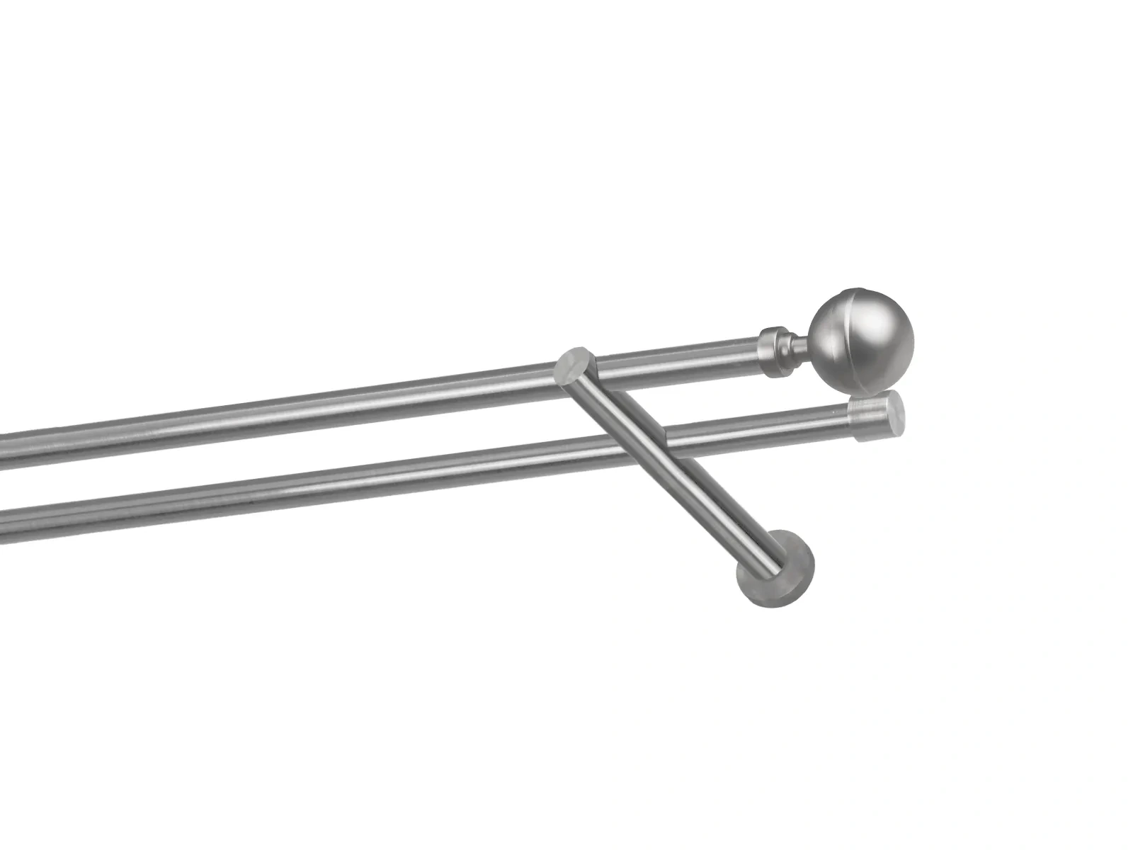 Felületkezelt kétsoros fém függönykarnis satin (matt nikkel) árnyalat. Minőségi galvanizált fém függönykarnisok. A galvanizálás nagyobb felületi szilárdságot, nagyobb karcállóságot és sima felületet biztosít. Készletként szállítjuk.