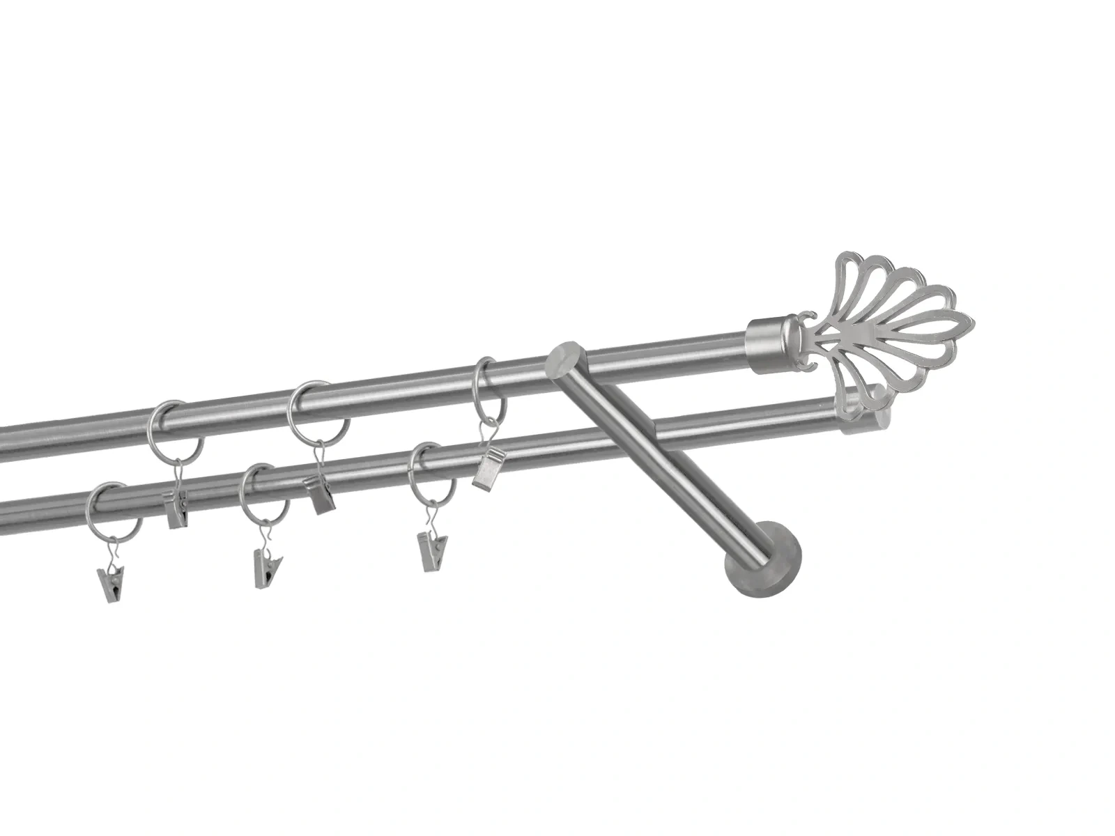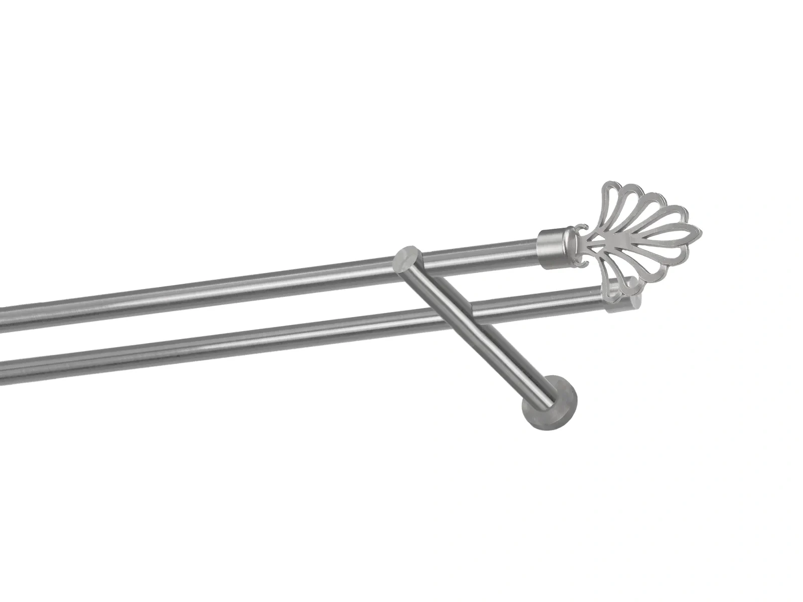 Felületkezelt kétsoros fém függönykarnis satin (matt nikkel) árnyalat. Minőségi galvanizált fém függönykarnisok. A galvanizálás nagyobb felületi szilárdságot, nagyobb karcállóságot és sima felületet biztosít. Készletként szállítjuk.