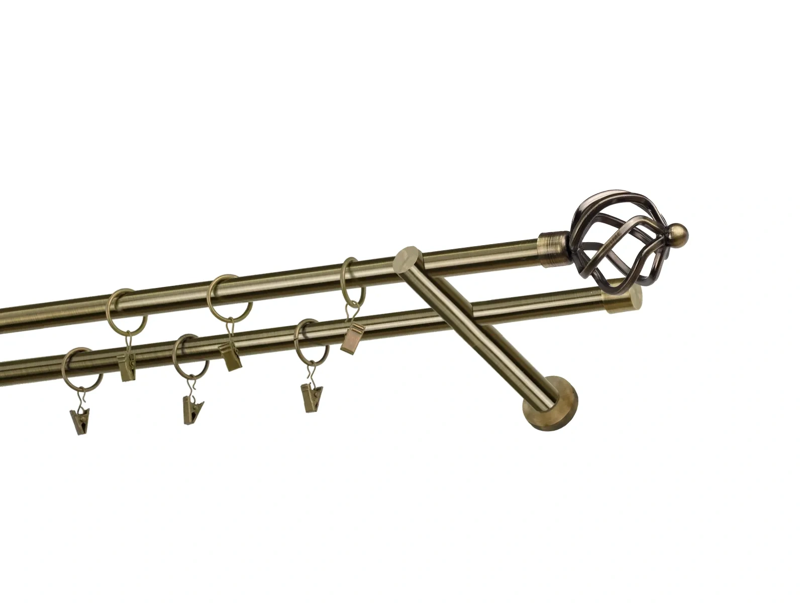 Felületkezelt kétsoros fém függönykarnis antik (matt arany) árnyalat. Minőségi galvanizált fém függönykarnisok. A galvanizálás nagyobb felületi szilárdságot, nagyobb karcállóságot és sima felületet biztosít. Készletként szállítjuk.