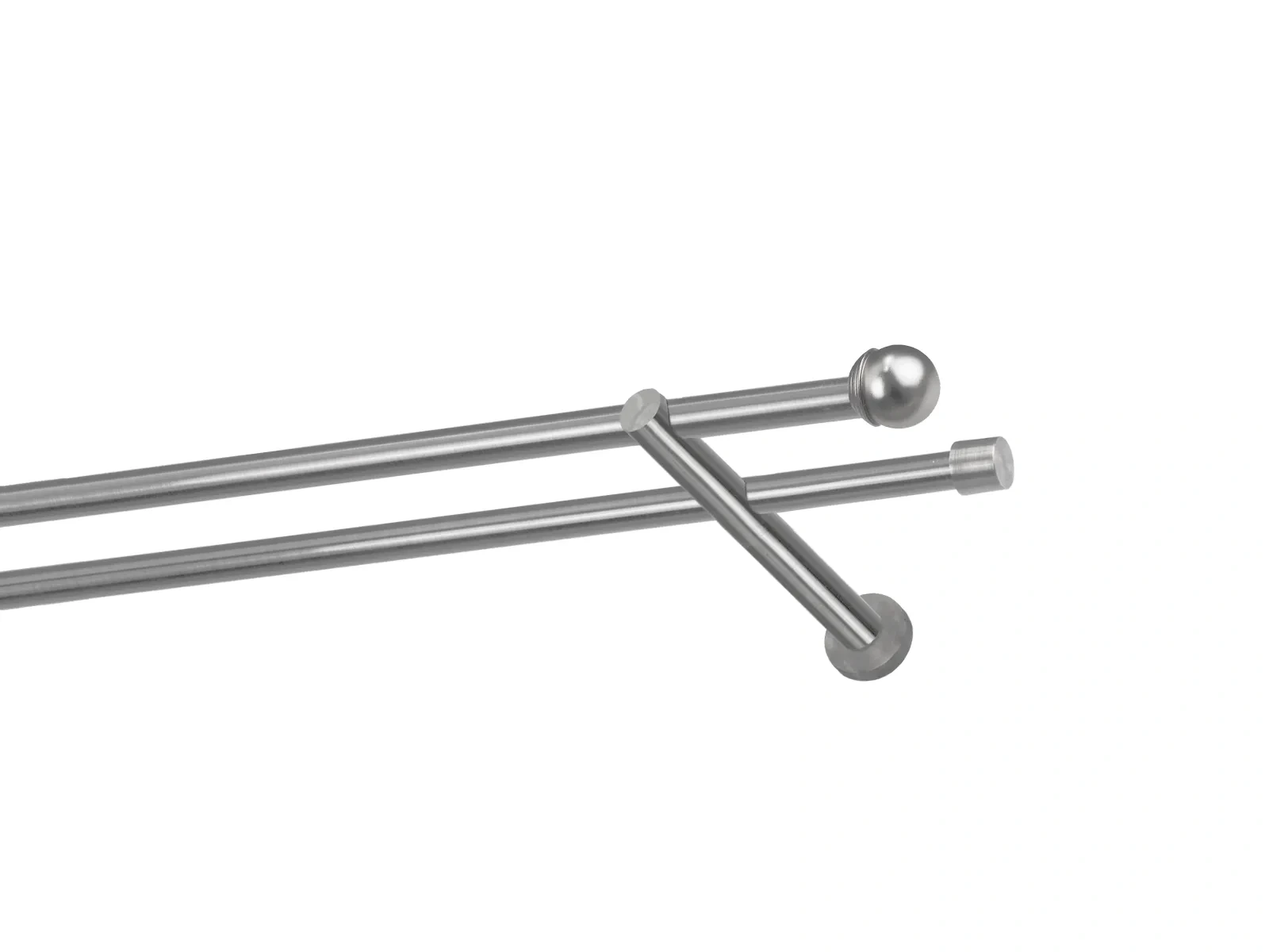 Felületkezelt kétsoros fém függönykarnis satin (matt nikkel) árnyalat. Minőségi galvanizált fém függönykarnisok. A galvanizálás nagyobb felületi szilárdságot, nagyobb karcállóságot és sima felületet biztosít. Készletként szállítjuk.