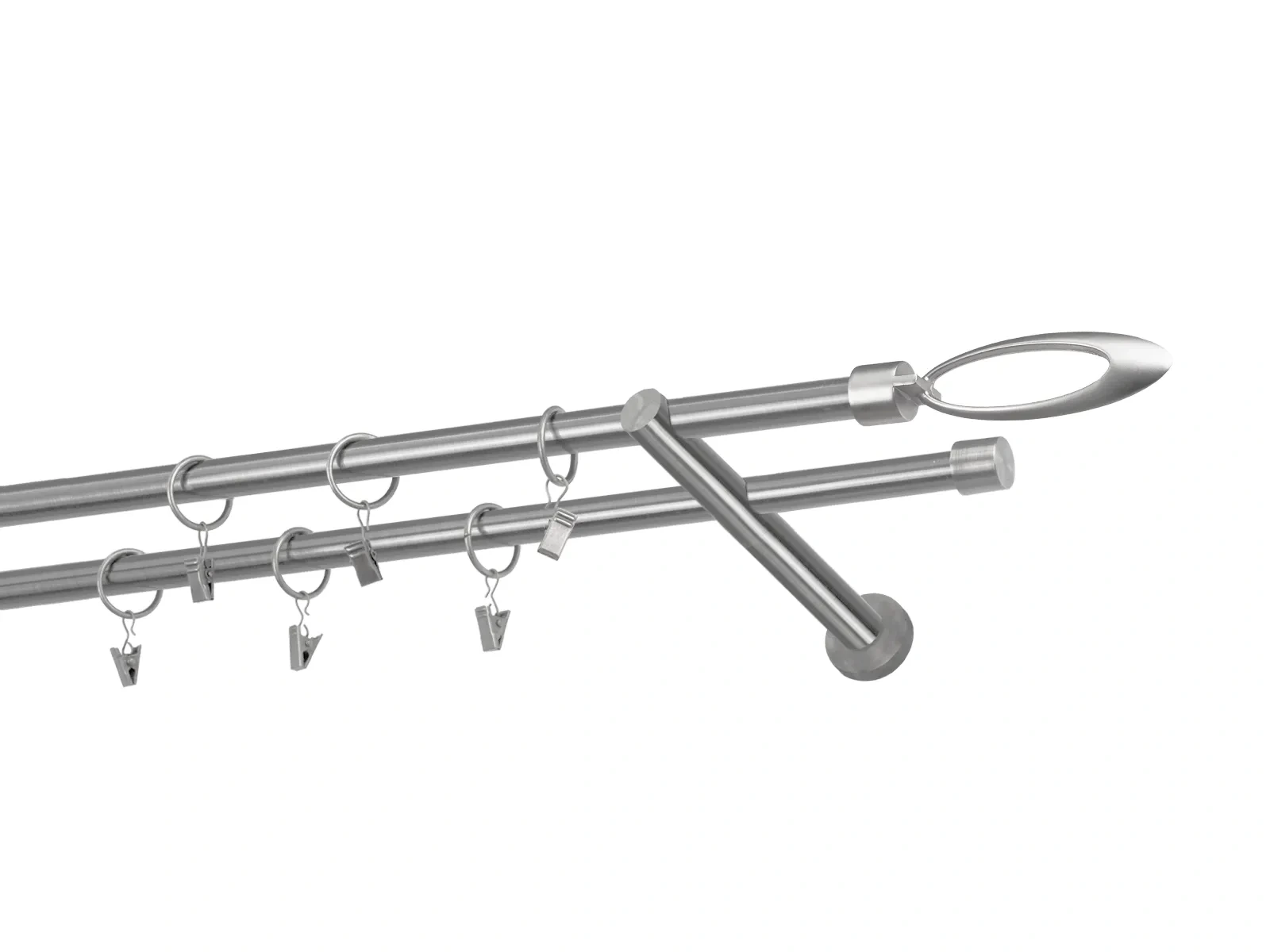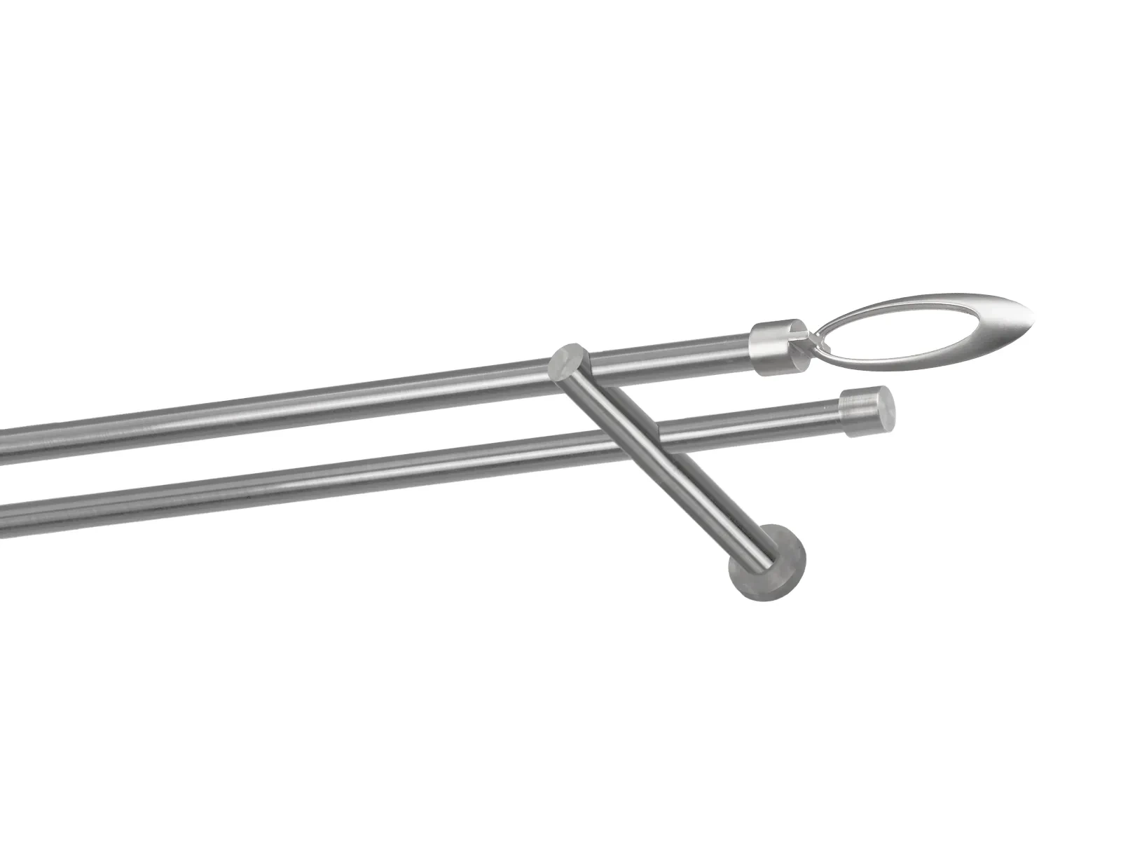 Felületkezelt kétsoros fém függönykarnis satin (matt nikkel) árnyalat. Minőségi galvanizált fém függönykarnisok. A galvanizálás nagyobb felületi szilárdságot, nagyobb karcállóságot és sima felületet biztosít. Készletként szállítjuk.