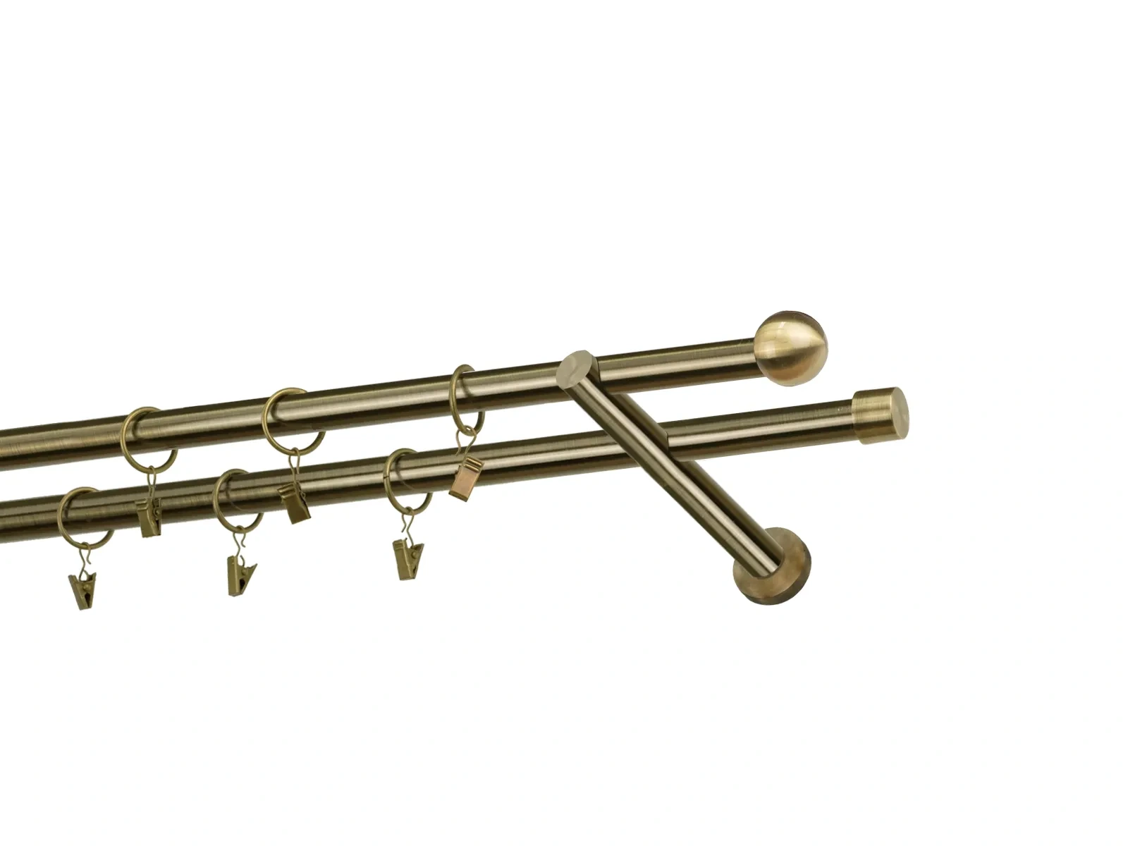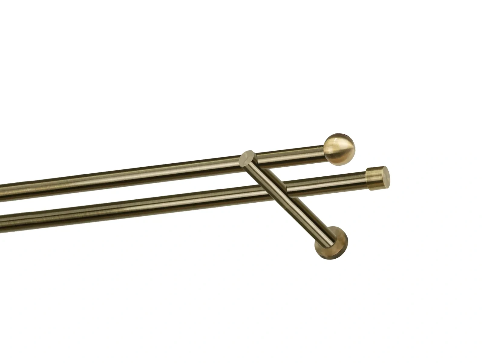 Felületkezelt kétsoros fém függönykarnis antik (matt arany) árnyalat. Minőségi galvanizált fém függönykarnisok. A galvanizálás nagyobb felületi szilárdságot, nagyobb karcállóságot és sima felületet biztosít. Készletként szállítjuk.