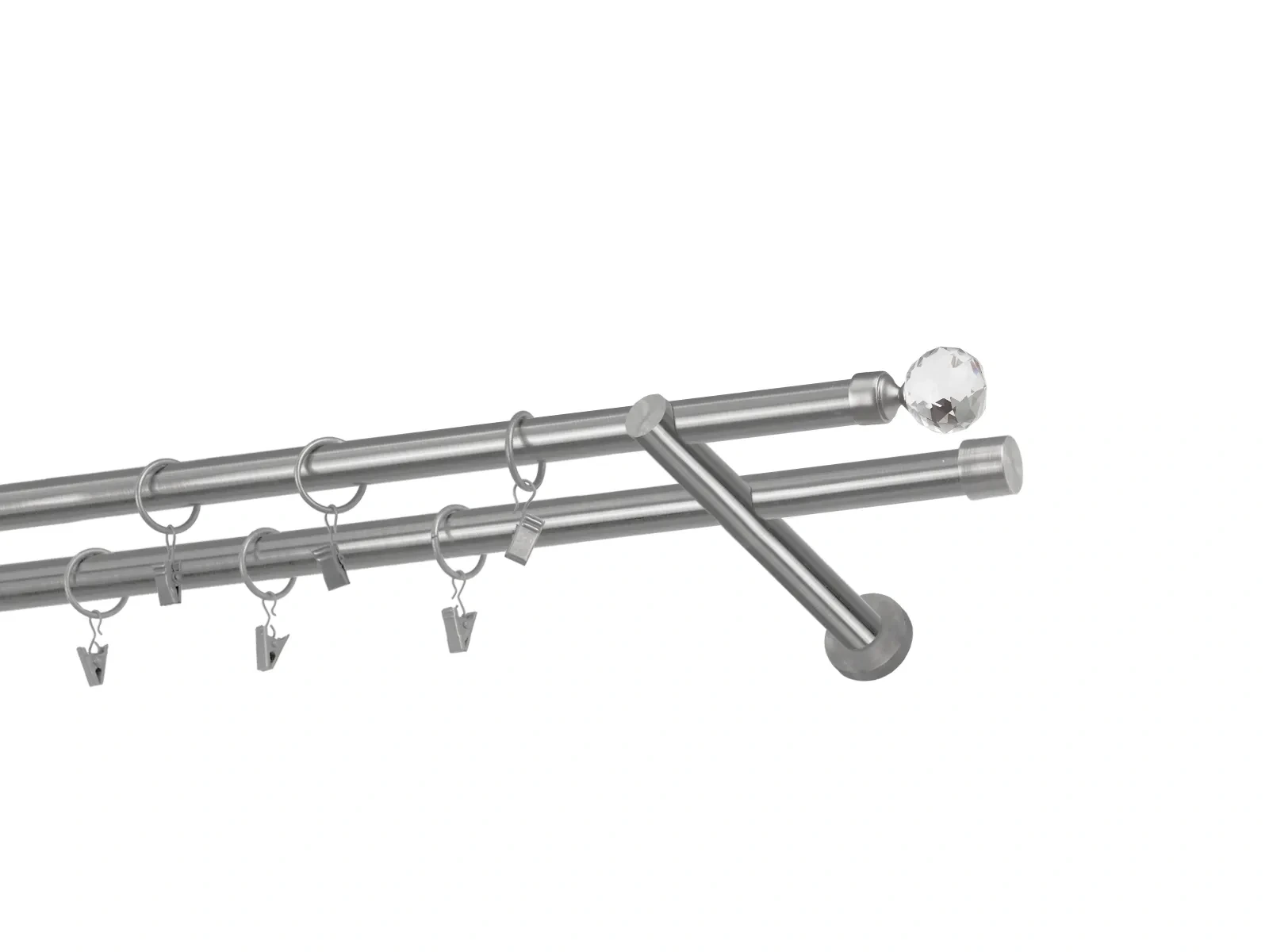 Felületkezelt kétsoros fém függönykarnis satin (matt nikkel) árnyalat. Minőségi galvanizált fém függönykarnisok. A galvanizálás nagyobb felületi szilárdságot, nagyobb karcállóságot és sima felületet biztosít. Készletként szállítjuk.
