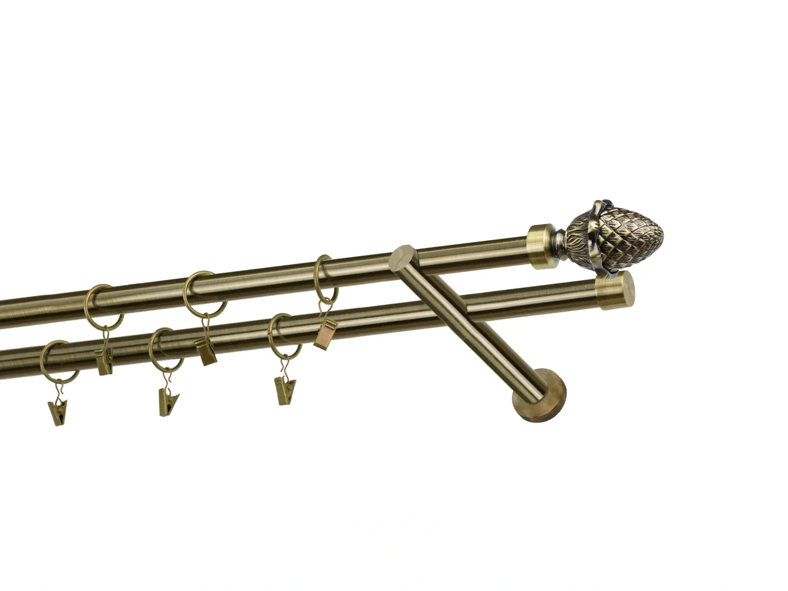 Felületkezelt kétsoros fém függönykarnis antik (matt arany) árnyalat. Minőségi galvanizált fém függönykarnisok. A galvanizálás nagyobb felületi szilárdságot, nagyobb karcállóságot és sima felületet biztosít. Készletként szállítjuk.