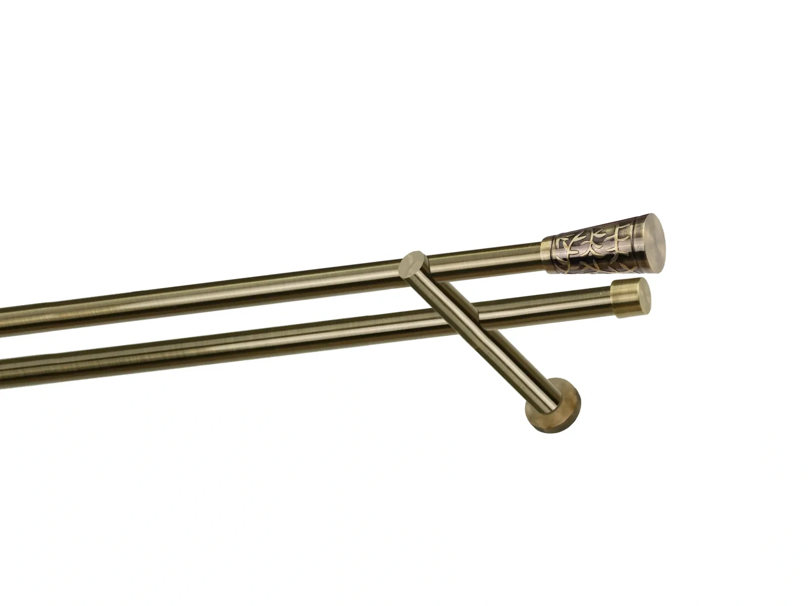 Felületkezelt kétsoros fém függönykarnis antik (matt arany) árnyalat. Minőségi galvanizált fém függönykarnisok. A galvanizálás nagyobb felületi szilárdságot, nagyobb karcállóságot és sima felületet biztosít. Készletként szállítjuk.