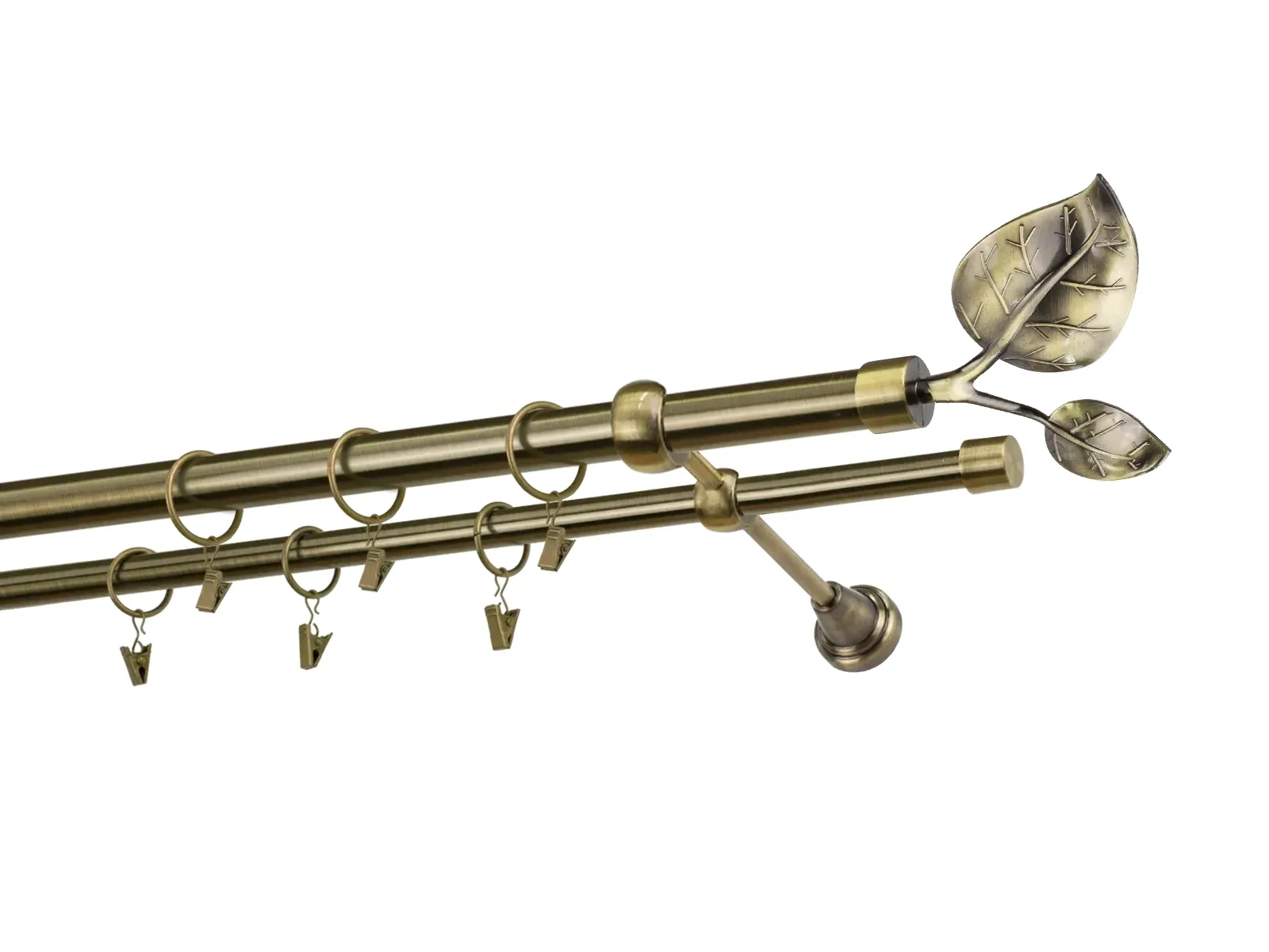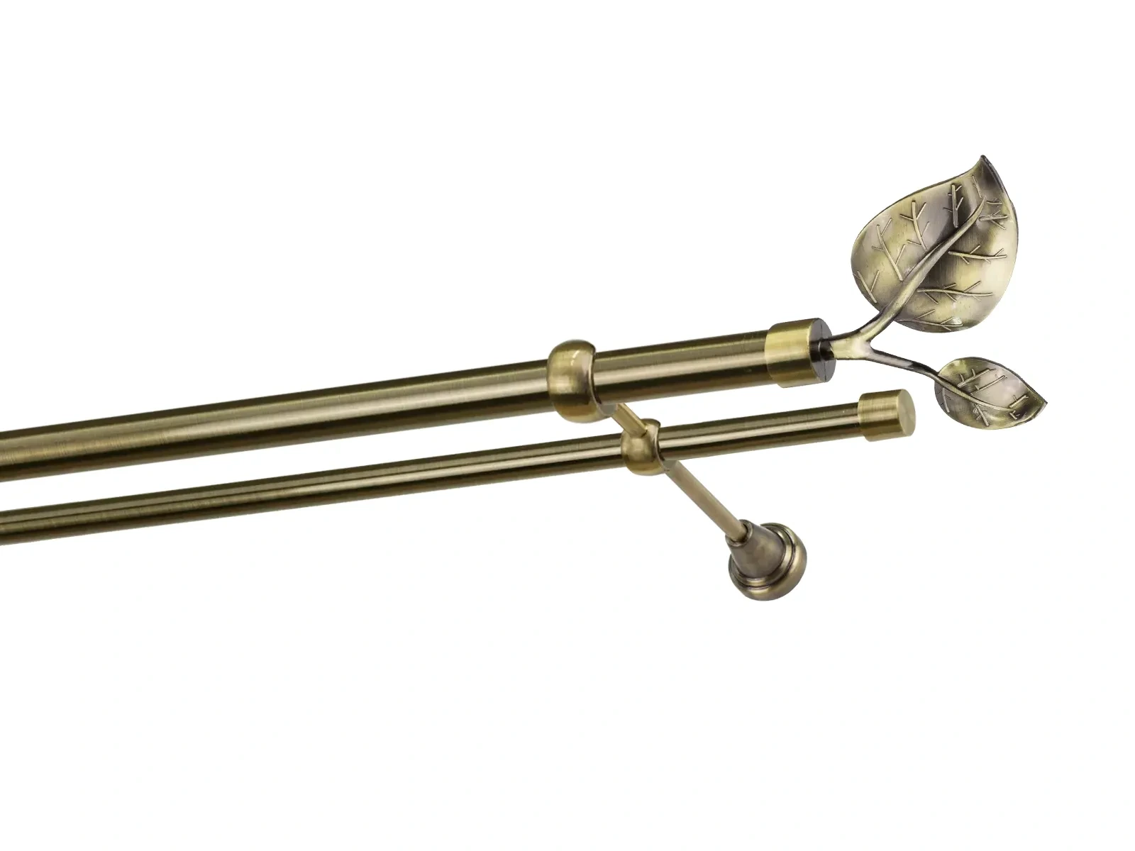 Felületkezelt kétsoros fém függönykarnis antik (matt arany) árnyalat. Minőségi galvanizált fém függönykarnisok. A galvanizálás nagyobb felületi szilárdságot, nagyobb karcállóságot és sima felületet biztosít. Készletként szállítjuk.