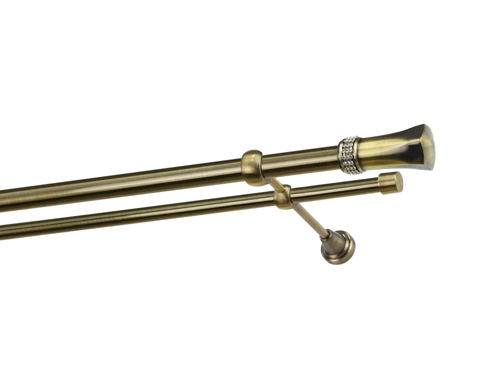 Felületkezelt kétsoros fém függönykarnis antik (matt arany) árnyalat. Minőségi galvanizált fém függönykarnisok. A galvanizálás nagyobb felületi szilárdságot, nagyobb karcállóságot és sima felületet biztosít. Készletként szállítjuk.