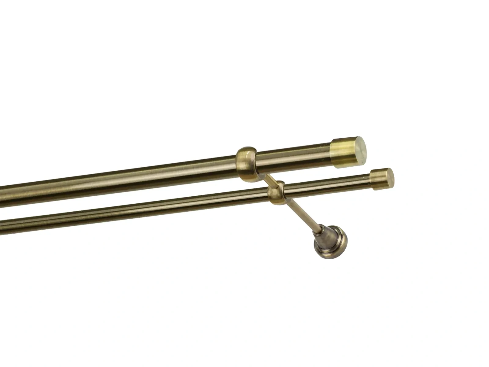 Felületkezelt kétsoros fém függönykarnis antik (matt arany) árnyalat. Minőségi galvanizált fém függönykarnisok. A galvanizálás nagyobb felületi szilárdságot, nagyobb karcállóságot és sima felületet biztosít. Készletként szállítjuk.