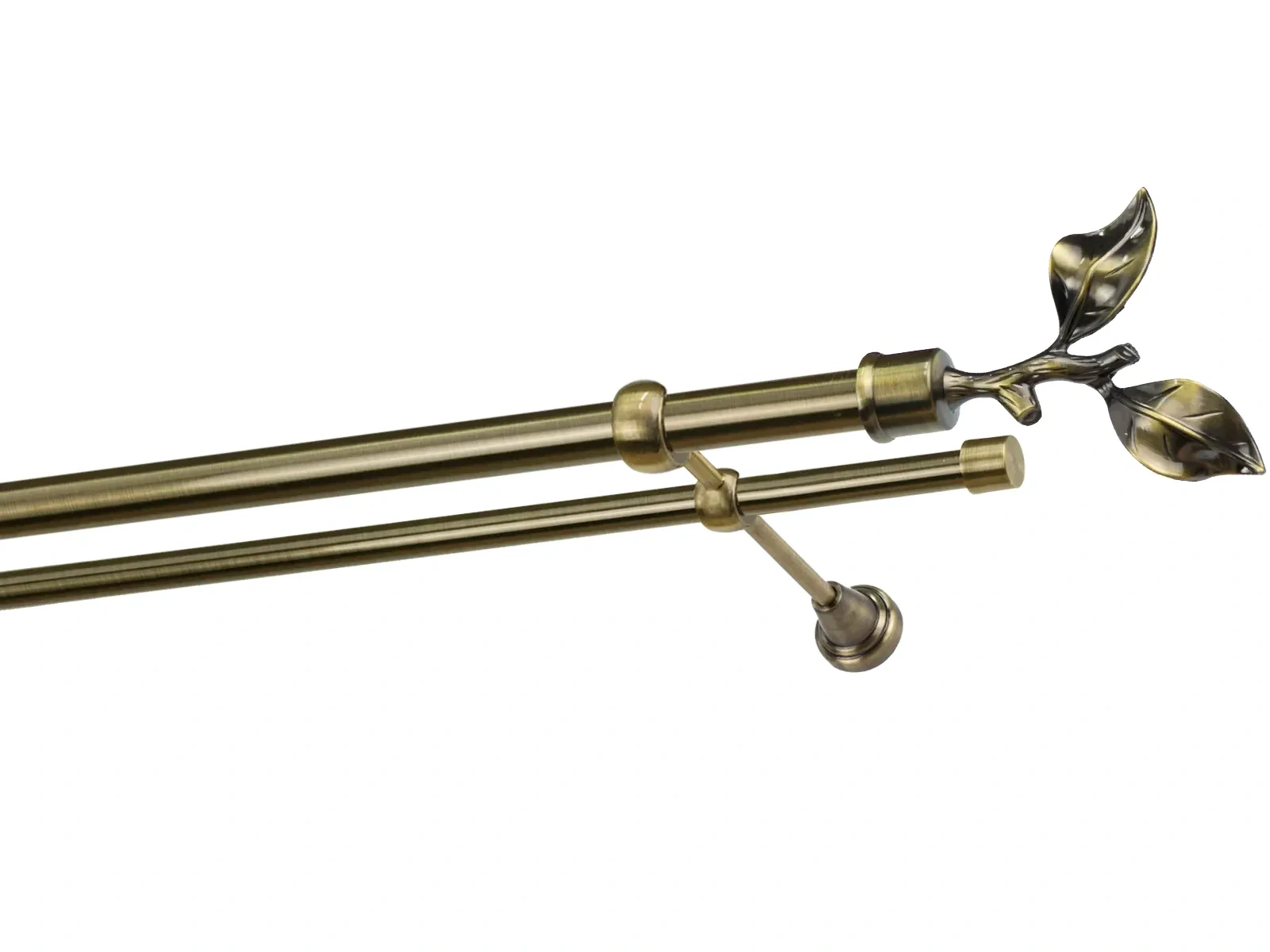 Felületkezelt kétsoros fém függönykarnis antik (matt arany) árnyalat. Minőségi galvanizált fém függönykarnisok. A galvanizálás nagyobb felületi szilárdságot, nagyobb karcállóságot és sima felületet biztosít. Készletként szállítjuk.