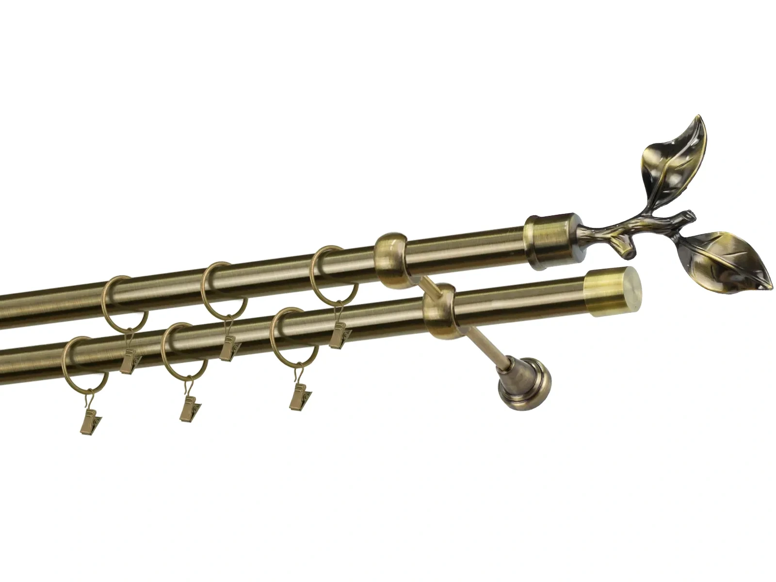 Felületkezelt kétsoros fém függönykarnis antik (matt arany) árnyalat. Minőségi galvanizált fém függönykarnisok. A galvanizálás nagyobb felületi szilárdságot, nagyobb karcállóságot és sima felületet biztosít. Készletként szállítjuk.