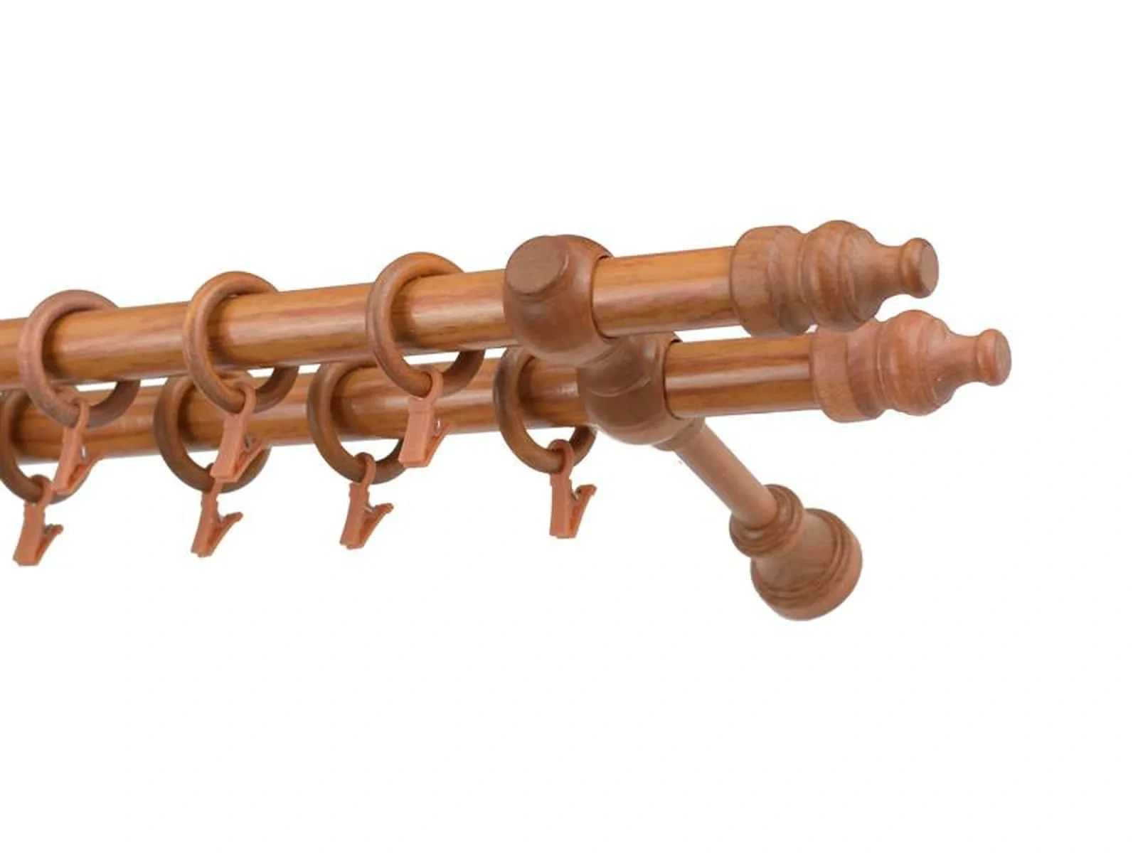 Végzárók, tartókonzolok és a karikák fából vannak. A rúd fából készül (olyan technológiával van gyártva, amilyennel vannak gyártva a fa ablakok is – ami kiküszöböli a hőhajlítást) és színre van fóliázva. Szettként vannak szállítva.